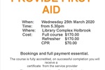 First Aid Course & CPR - Holbrook Library 25 Mar 2020 First Aid Course & CPR - Holbrook Library Holbrook Library , Library Lane, Holbrook 2644 Tagged as: , Talks & Workshops